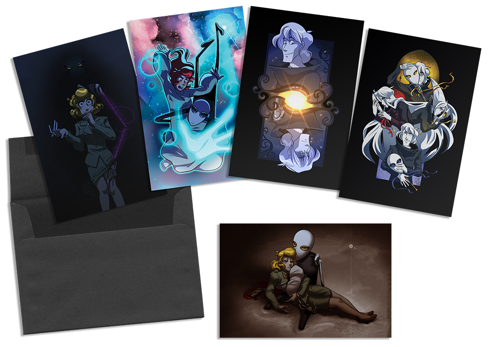 This is a set of postcard sized prints featuring some of my favorite art with the Grey aliens from the webcomic, Trying Human!